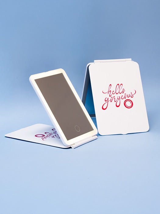 Slim, foldable, and easy to pack, this mirror features built-in LED lighting and a rechargeable battery—perfect for touch-ups at home or on the go.
