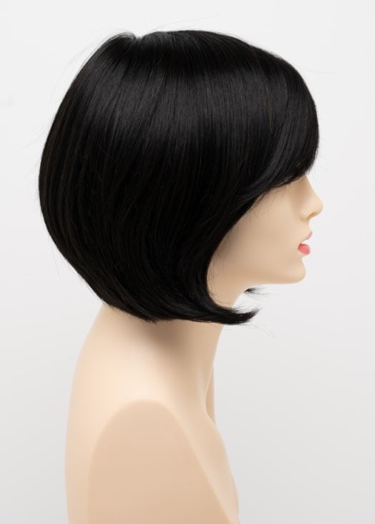 The Shyla by Envy is a short, angled, and modern human hair blend wig. The full hand-tied monofilament top allows you the change the part and enhances the styling versatility. The sides and back are hand-tied and lined with silk chiffon for added comfort. This style is made with trademarked Envyhair, which consists of a unique blend of 30% human hair and 70% Heat Friendly Synthetic. The choppy side bang can be cut or trimmed by your stylist. This style is flattering and very modern!