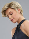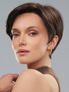 Luna by Jon Renau is from the HD Collection. This pixie wig puts a modern twist on the “bixie” hairstyle by including textured layers and heavy-weight bangs. The sleek hair is made with heat resistant synthetic fiber for versatile styling. The lace front mimics the look of hair growth for a discreet hairline. The low permatease creates a natural look.