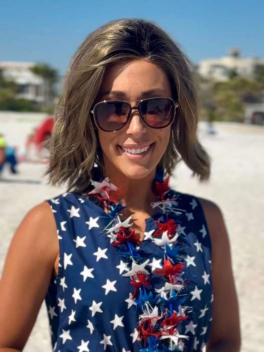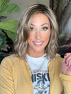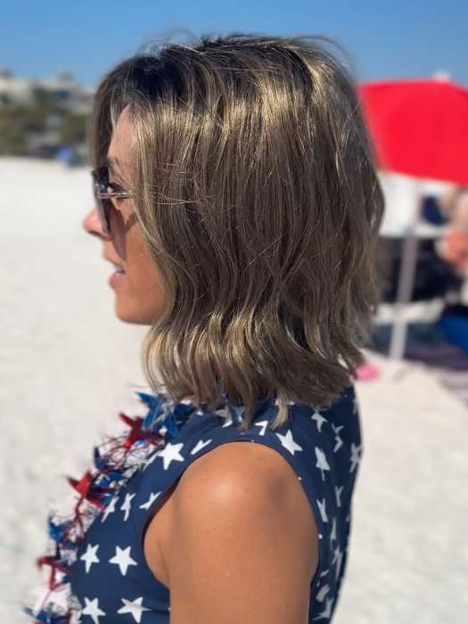 Charlotte by Envy showcases a wavy, layered bob that extends past the chin for a mid-length hairdo. The synthetic wig has a monofilament part that creates the look of hair growth. The lace front gives the illusion of natural hairline.