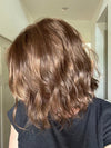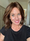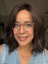 Charlotte by Envy showcases a wavy, layered bob that extends past the chin for a mid-length hairdo. The synthetic wig has a monofilament part that creates the look of hair growth. The lace front gives the illusion of natural hairline.