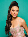 26in Trending Waves Pocket Pony by Kim Kimble is your go-to glam ponytail extension that features gorgeous long waves with slightly straightened ends for a trendy look. The easy-to-attach claw clip has a hidden drawstring pocket to keep your hair secure and in place.