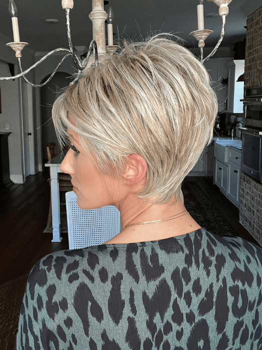 Advanced French by Raquel Welch is a pixie wig with long layers throughout the top and crown, combined with loosely textured lengths to create a completely free-formed look. For added styling excitement, this short wig silhouette is complemented by a smooth neck-hugging nape and incredibly natural looking synthetic hair.