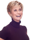 Short, close-cropped boy cut wig with all-over layering, tapered nape, an open cap for a light, comfortable fit, and a new combination of fibers that are soft, light, and vibrant. Use synthetic styling products to achieve a change in volume or texture.