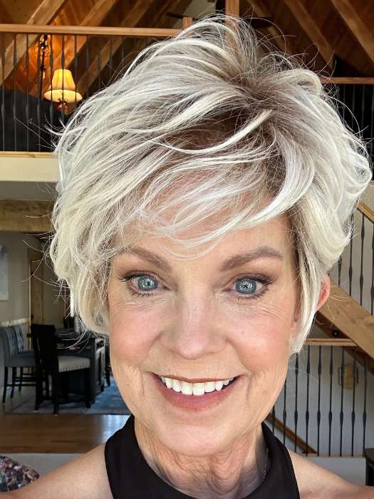 Cover by Ellen Wille is a shag-inspired pixie wig from their Hair Power collection. Its longer length and wavy texture create a trendy hairstyle that’s perfect for all occasions. The heat friendly synthetic fiber, extended lace front, and monofilament part give you endless styling potential.