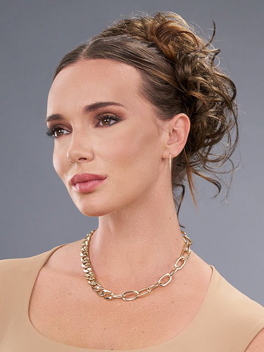EasiWrap Medium by Jon Renau is a loose, messy bun extension from their easiTress collection. The synthetic hair has a wavy texture for a playful look. The elastic wrap allows you to easily attach the bun to your hair for a fun updo. Also available in Mini and Full Lengths.
