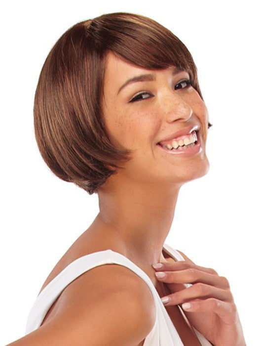Chin-length bob style with monofilament top construction for versatility and a classic parisienne look.