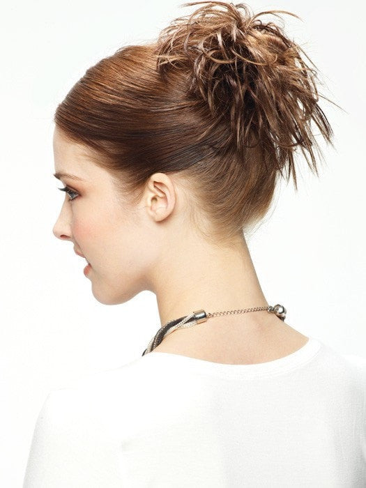 Jolt features dual straight and curly textures on an elastic band. Getting More Attention Than Usual? Get used to it. It's the hair. Our elasticized hair wraps rebel against the ordinary with extreme style. Model is shown wearing two in second image!