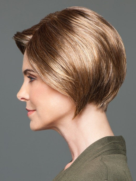 Love Affair by Gabor is a rounded bob cut with smooth layers that hug the jawline. The sheer lace front allows you to style your hair away from the face creating different looks. The monofilament part extends from the hairline to the crown giving you a scalp appearance where you need it. This style is layered and easy to style with your fingers out of the box. To further personalize, have your stylist trim the bang and layers around the face.