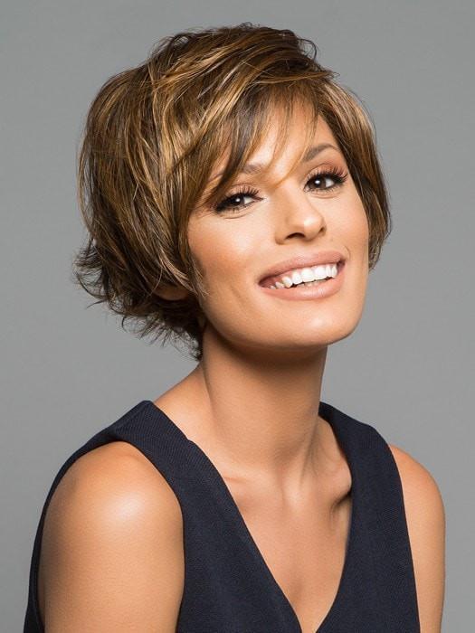 Mariska Petite by Jon Renau is a short, layered, and voluminous synthetic lace front wig with rounded layers. The monofilament top is hand-tied and allows multi-directional parting while providing the appearance of natural growth. The graduated layers add movement and frame your face shape for the most flattering look. Also available in AVERAGE cap size.
