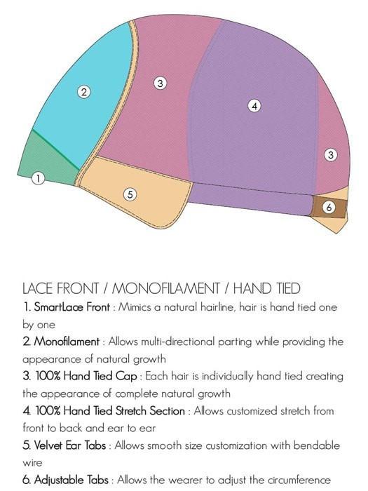 | CAP DESIGN | Lace Front, Monofilament, 100% Hand Tied |