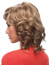 Patti wig by Estetica Designs Wigs is a shoulder-length, layered style with loose spiral curls, a lace front and a monofilament top. Patti's lace front creates a natural-looking hairline that allows you to style hair off the face. The monofilament top creates the appearance of natural hair growth where the hair is parted and allows you part the hair in any direction. And open wefting in the sides and back allows for better air ventilation, which makes it cool and comfortable to wear. This is an incredibly natural-looking style!