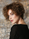Stream by Ellen Wille is a short and trendy wig with an edgy take on a kinky curl. The tight waves give the style lots of bounce and movement, while the nape is straight and tapered. This wig features a small, square monofilament crown, and is ideal for an average head size. The density of the ready-to-wear synthetic hair looks more like natural hair and requires little to no customization or thinning. Stream is part of the Ellen Wille Perucci collection.