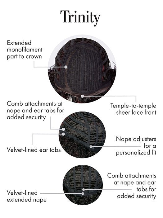 Introducing Trinity by Kim Kimble. This wig is for anyone who is looking to show off their coiled curls, with individuality and pride. The side part adds a luxurious touch and the temple-to-temple lace front allows the appearance of a natural hairline.