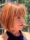 Aria is the perfect bob for summer. With the cut being off of the shoulders, this style is sleek and stylish. I love this for any occasion and especially for the summer heat in Southern California. The color, Autumn Sunrise is stunning. I show her in the bright sunlight and in my living room in front of a big window. This style is sure to get many comments on both the style and the color. Gorgeous.
