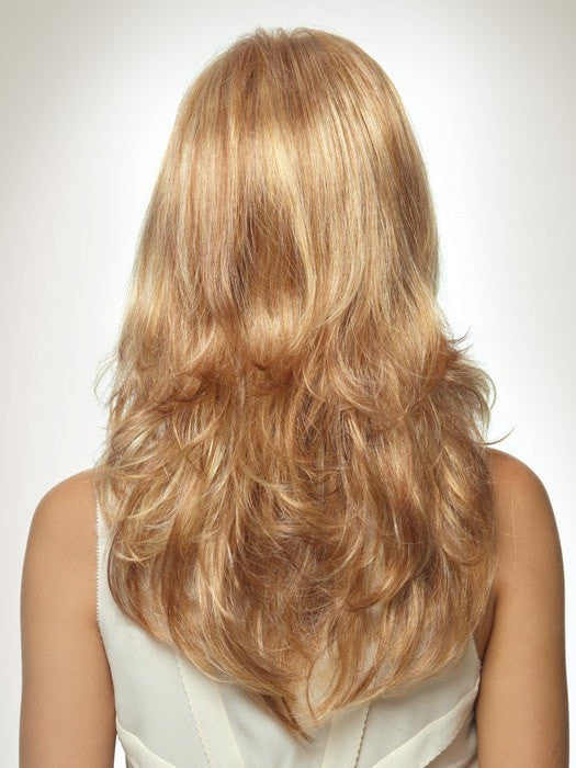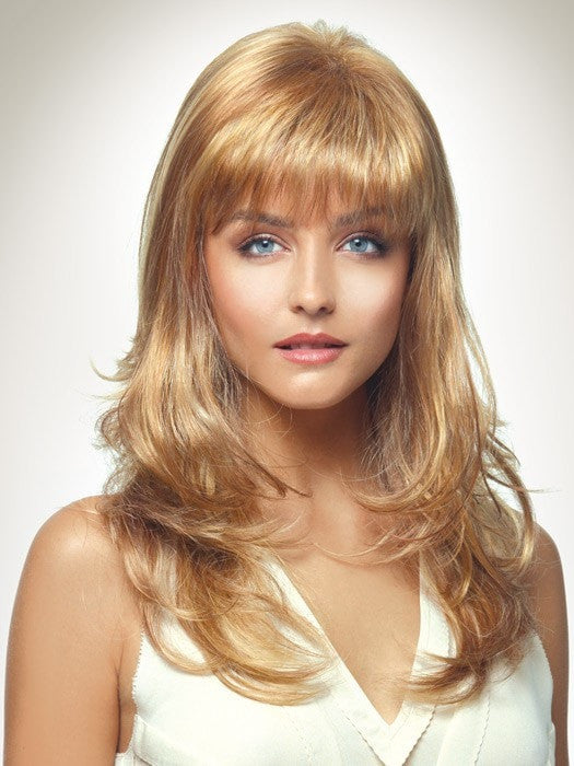 Bethenny by Revlon is a long, layered, and softly waved synthetic wig. The machine-made cap is open wefted creating a light, cool feel. This style is full of layers and length that create a stylish look with movement. The full bang can be trimmed to fit your face shape. This ready-to-wear look is versatile and can be worn in a loose up-do or side pony.
