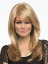 Brooke by Envy Wigs is a glamorous long synthetic wig. The hand-tied lace in the front creates the illusion of your own hairline and allows you to style the bang off of the face. The full hand-tied monofilament top lets you change the part, enhancing the versatility. The longer bang and fringe can be cut or trimmed by your stylist. This style is full of layers, movement, and body!