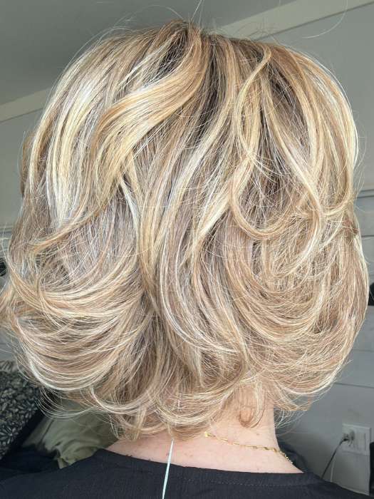 Charlotte Realistic by TressAllure upgrades their classic Charlotte Wig with this chic medium bob. The soft waves and expertly cut layers create a naturally tousled look. The brand’s signature Look Fabulous Realistic Lite is an ultra lightweight, heat friendly synthetic fiber for versatile styling. The cap maximizes comfort and realism, featuring: a hand tied monofilament top for multi-directional parting, an ear-to-ear lace front for off-the-face styling, and an open-wefted back that conforms to your head shape for a secure fit.