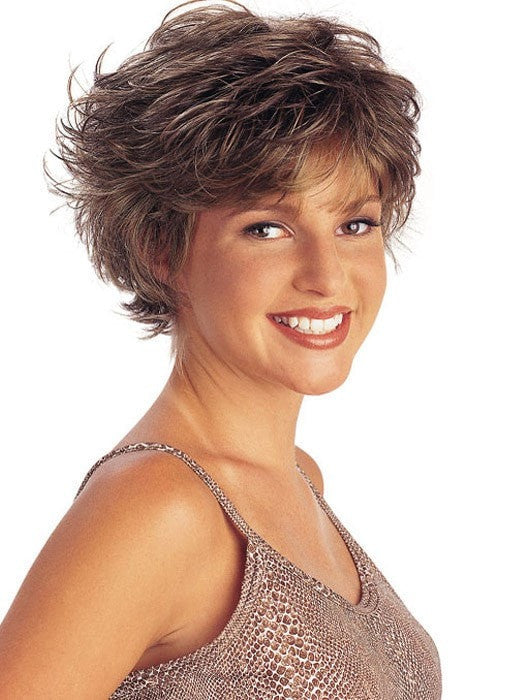 Short layered flip style with a monofilament top. Feathery out-flipped layers and wispy texture creates the ultimate look.