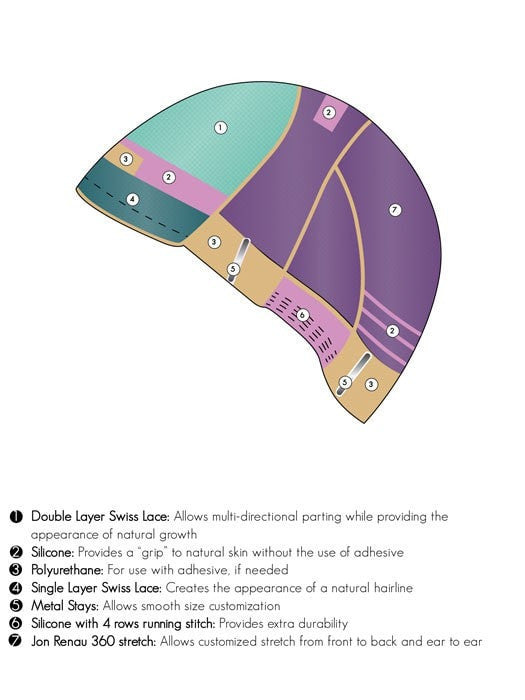 - Silicone – Provides a grip to the skin on your scalp with or without the use of adhesive.