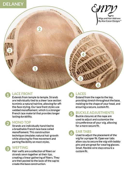 Delaney by Envy Wigs is a layered, short shag wig that's modern and ready to wear. The hand-tied lace in the front creates the illusion of your own hairline and allows you to style the bang off of the face. The full hand-tied monofilament top lets you the change the part, enhancing the versatility. The longer sidepieces and fringe can be cut or trimmed by your stylist. This style is full of layers, flips, and angles!