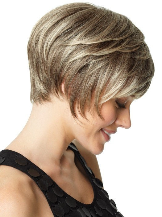 Deluxe by Gabor is an easy-care short bob cut that includes a monofilament crown for a natural contour and full sides that blend into a short, layered nape.
