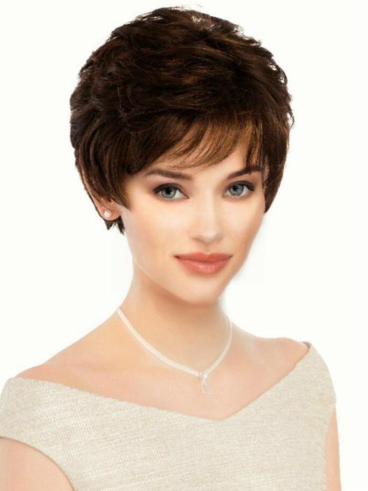 Diana Wig by Louis Ferre is an adorable short style has smooth layers and great volume at the crown for full height.  It is a perfect style if you want a full easy short cut. The textured bangs are worn down to soften the face.  Featuring a full monofilament top for extra comfort and style-ability. Will compliment most any face shape. Light weight and ready to wear. Watch Diana video and read customer wig reviews below!
