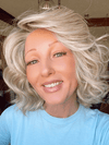 This is my very first wig purchase. I’ve watched hundreds of reels, pictures videos to try to choose the best one for me. I have plenty of bio hair, but it’s never really been very thick or voluminous as I would like. I have also always wanted naturally curly or wavy hair badly, which I do not have. I love this shaded biscuit Ss color so much! Great match for my bio ashy with a little bit of golden blonde and a hint of grey coming in. Pretty awesome volume too. I’m not a big fan of flat hair so that’s why I chose Raquel W. I read that her hair tends to be a little fuller. The hairline was another reason I chose Raquel W this one is pretty awesome. I didn’t have to do pretty much anything to it except trim the lace a bit.