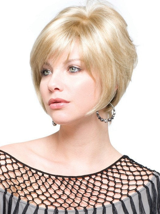 Emily by Amore is an elegant, face framing bob that is tousled at the crown and combined with a double-layer monofilament cap construction.