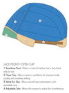 | MEASUREMENTS | Front: 5" | Crown: 5.25" | Sides: 2" | Nape: 1.75" |
