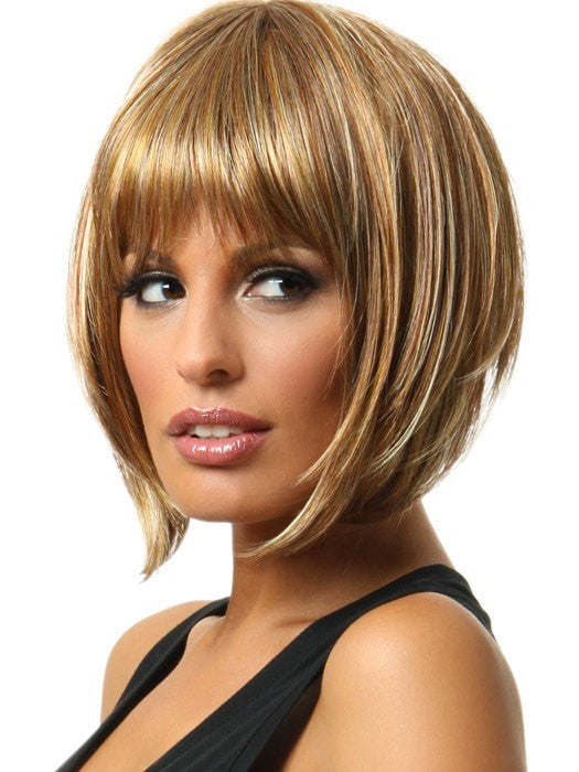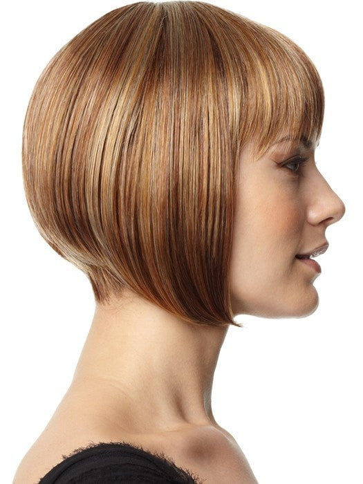 Finesse by Raquel Welch has a Sheer Indulgence™ monofilament crown that adds a smooth natural silhouette to this beautifully crafted, below-the-chin page. The sleek sides gently graduate up to a collar length nape. Feather cut bangs complete the style.