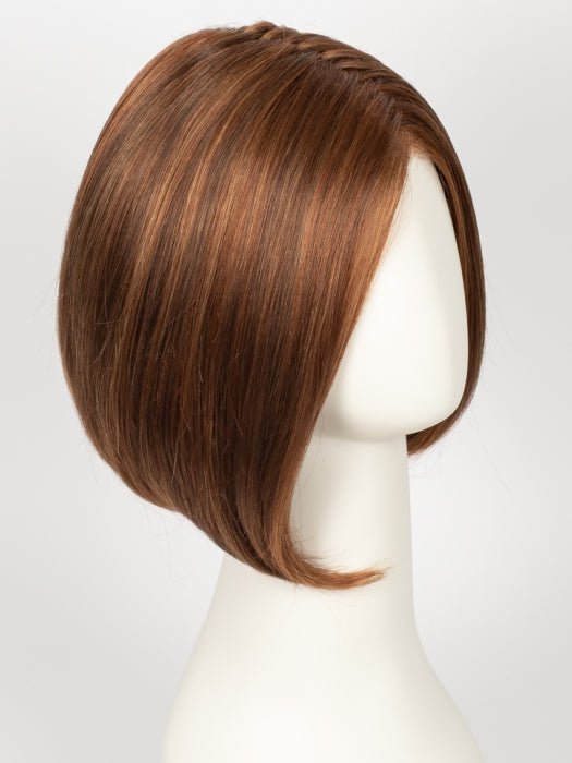 High Society by Gabor is a precision crafted, below-the-chin bob wig that includes sides that gently graduate up to a collar length nape including a hand-knotted monofilament part for varied parting options and a sheer lace front for a life-like, off-the-face styling.