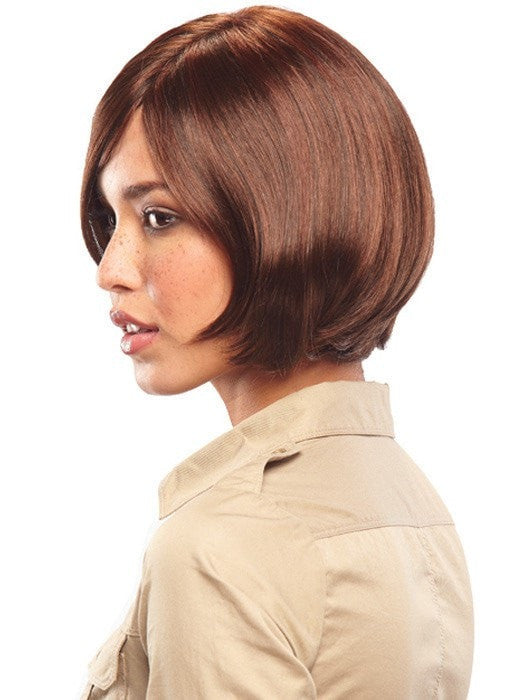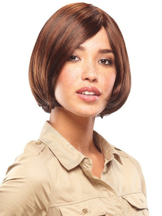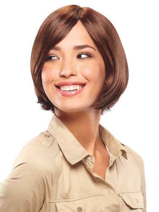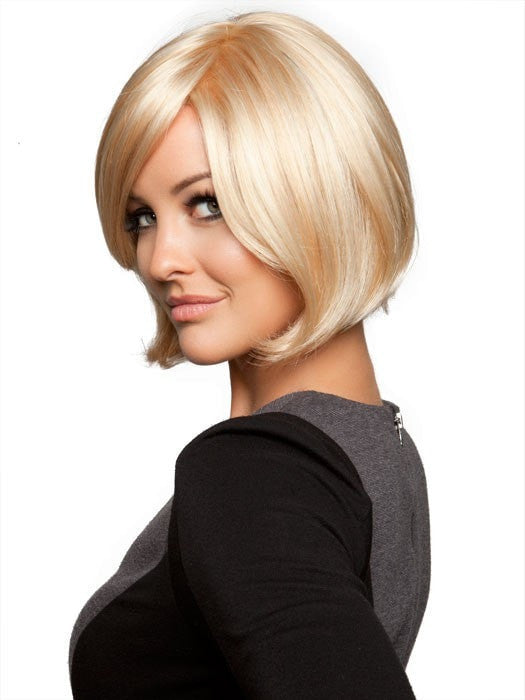 Chin-length bob style with monofilament top construction for versatility. 100% hand-tied for added comfort.