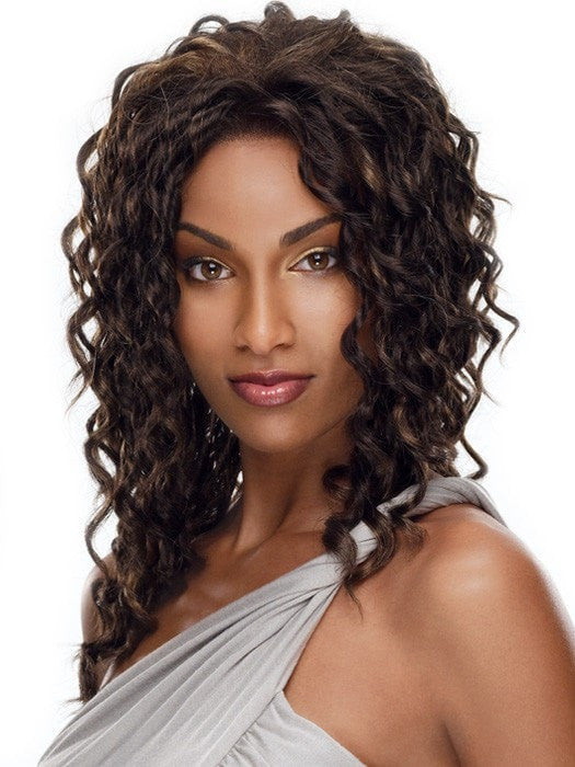 Kay by Revlon is a long length curly wig with layers throughout combined with a lace front cap construction.