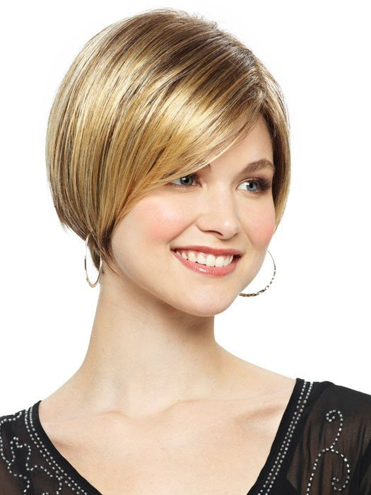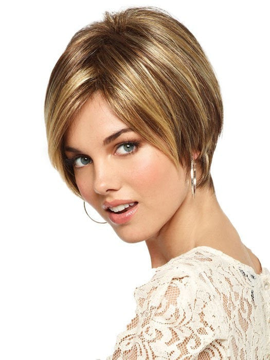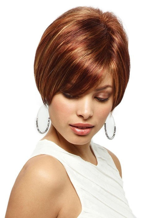 Lauren wig by Revlon® keeps you cool and confident with minimal fuss. Sleek layers made from synthetic hair are ready to wear from the box. With face-framing bangs and a tapered nape for coverage, this style produces excellent manageability. The short and polished layers let this wig style easily transition from day to night. A lightweight machine-made cap on the Lauren wig provides enhanced breathability to keep you cool throughout the day. Also included are bendable open ear tabs and a velour front hairline. For breezy comfort and easy style, the Lauren wig by Revlon® is a great option!