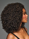 Makayla from The Kim Kimble Collection is the supreme expression of natural texture. This style features beautifully coiled curls and an oval contour, enhanced by soft layering throughout. The lace front and monofilament part mimic the appearance of a natural hair line. Choose to embrace the original shape or pick it out for the full glory of her modern Motown texture.