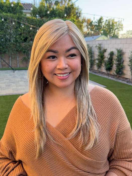 Mesmerized by Raquel Welch is a classic, long style with side-sweeping fringe framing the face. The look is a tailored and polished professional blow out with a salon-quality finish. More than smooth and glossy dream hair, it’s lightweight, comfortable and easy to wear. The hand-tied base and extended lace allows the hair to be easily be styled and pulled back into a ponytail.