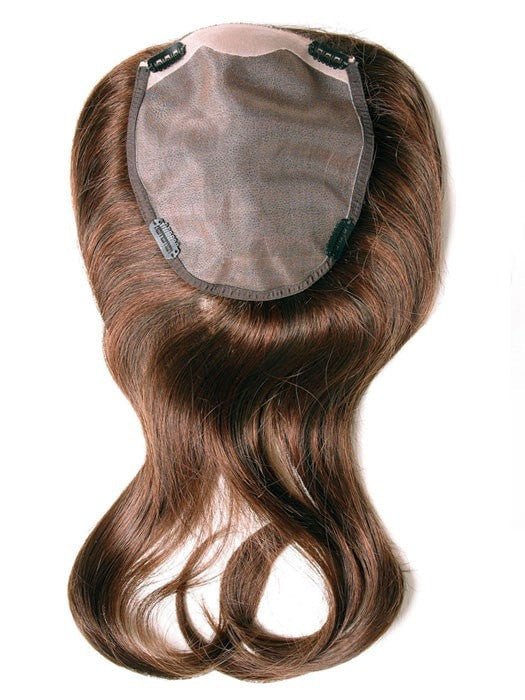 The Mono Long by Jon Renau is a monofilament hairpiece constructed of synthetic fiber. The base of the hairpiece measures 6.5”x5.75” and the overall hair length is 9”–17”. The monofilament fiber is sheer allowing it to blend in with all skin tones and the construction allows for easy styling and multi-directional parting. This hair addition is great for adding extra volume to thinning crown hair. Have a professional trim in a bang, layers, or customize the piece to blend with your natural hair.