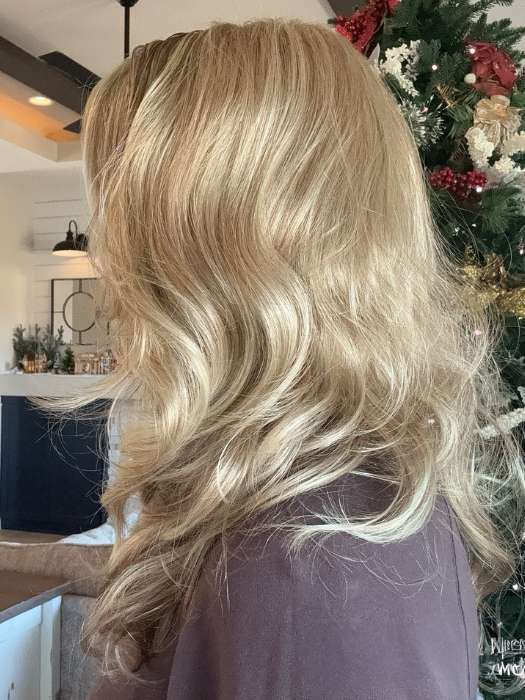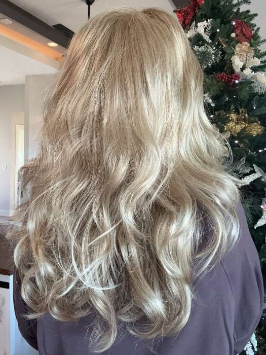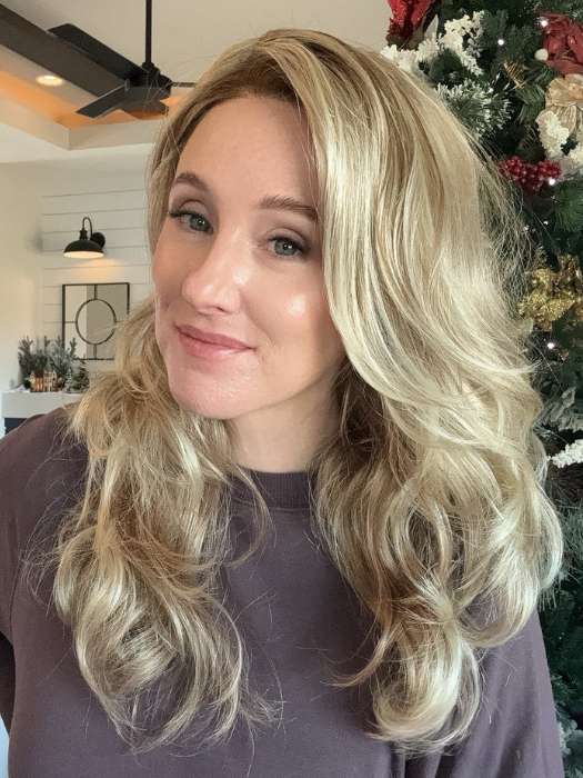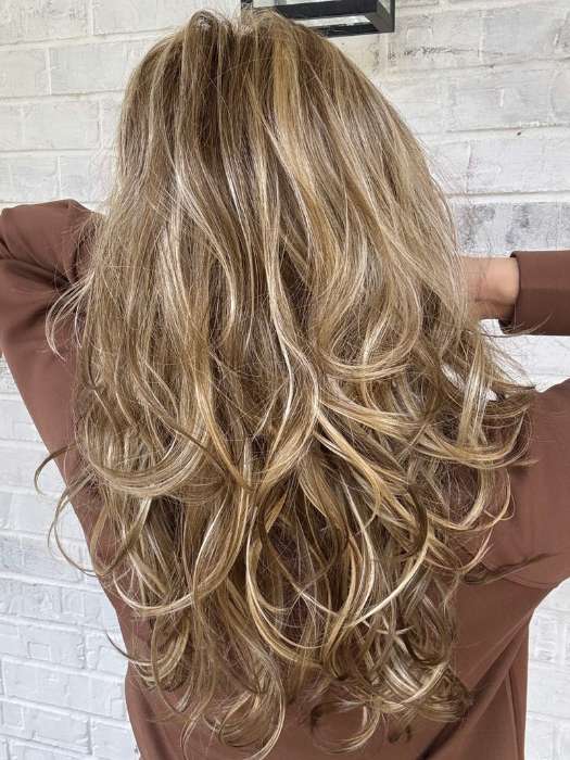 Orchid by Estetica Designs Wigs is a long, voluminous wig with flowing loose waves, face-framing layers, and side fringe. Orchid has also a monofilament part, combined with a ready-to-wear lace front and an open-cap construction.