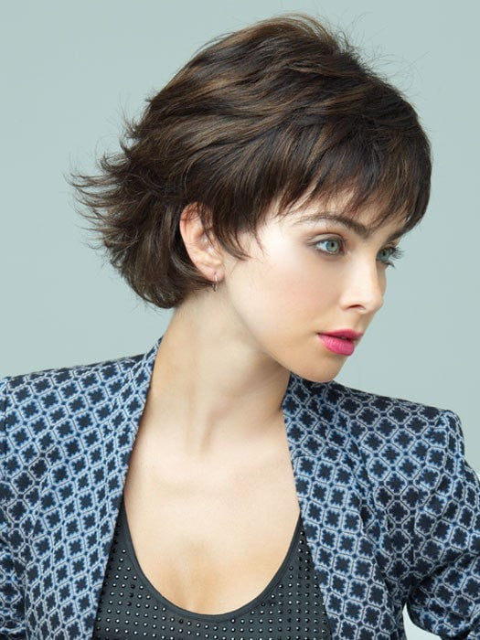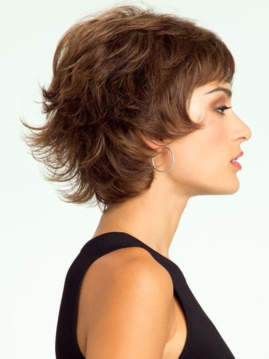 Paisley wig (formerly Poetry) by Revlon Wigs is a short, layered style with razored edges and a monofilament top. The mono top gives you both styling versatility and a more natural appearance. The open wefting in the sides and back of the cap is breathable and lightweight. And with the pre-styled synthetic hair, this sassy style is ready-to-wear!