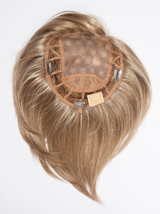 Paris hair enhancement by Noriko, is a clip on top piece. A monofilament construction creates the appearance of natural hair grow from the scalp and allows you to part in different directions. The piece attaches with pressure sensitive clips which are easy to apply and comfortable. Paris is a great solution for adding more volume at the top or to conceal thinning at the crown.