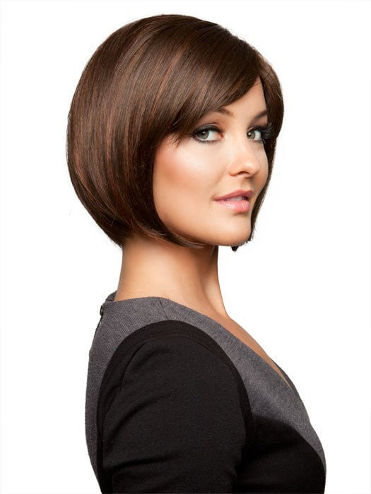 Sleek, blunt bob style with a double monofilament top for styling versatility. The added layer of monofilament material adds extreme comfort and a natural appearance.