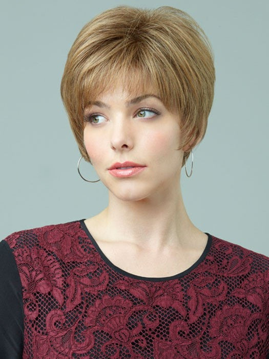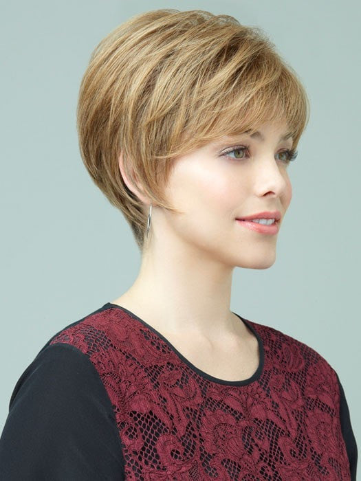 Pearl wig by Revlon Wigs is a textured, modern cut with longer layers. Pearl wig has textured ends, generous volume on top, and a tapered neckline. The basic cap with open wefting is breathable and lightweight. And with the pre-styled synthetic hair, this short wig is ready-to-wear!
