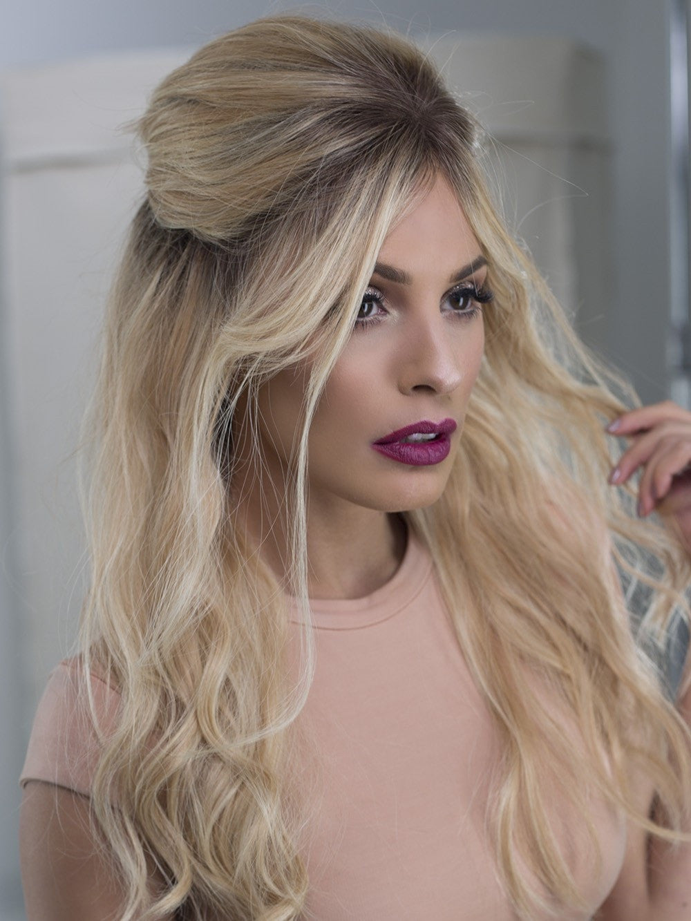 The lace front extends from side to side and is sheer to mimic your own hair growth. The monofilament is hand-tied to give you a natural look with natural movement. The sides and back are hand-tied to give you the most styling versatility and comfort. This style comes curled out of the box but must be restyled after washing. For the best results, we recommend taking your wig to a professional stylist to wash and curl.