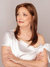 Mel wearing STAR QUALITY by RAQUEL WELCH in R3025S+ GLAZED CINNAMON | Medium Auburn with Ginger Blonde Highlights on Top