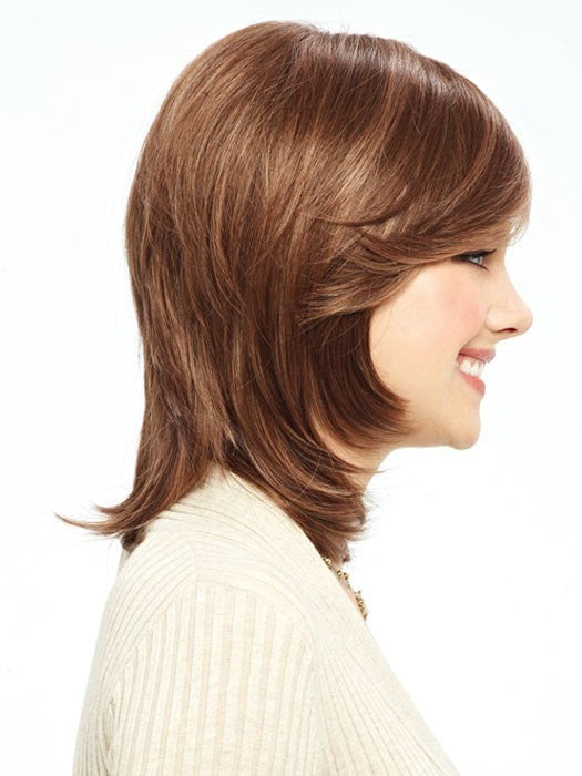 Summer by Amore is an easy going, medium length style with a swooped fringe and round layers featuring the double-layered monofilament cap construction.