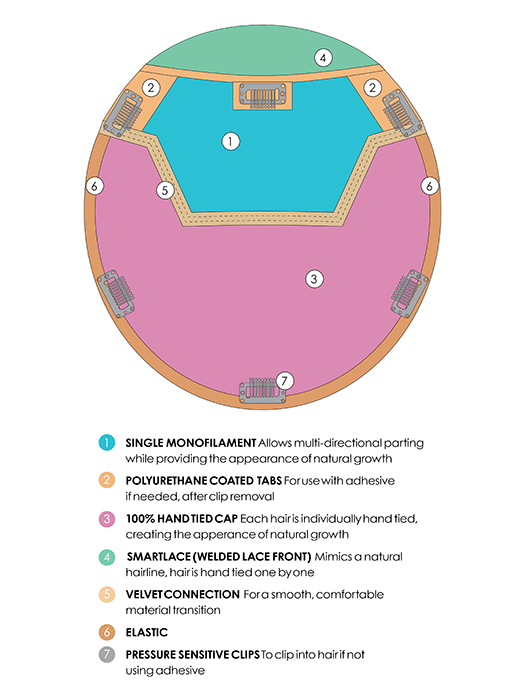 - Single Monofilament - The base is hand-knotted to create the appearance of natural hair growth, which allows for parting versatility, and is sheer to blend with all skin tones.