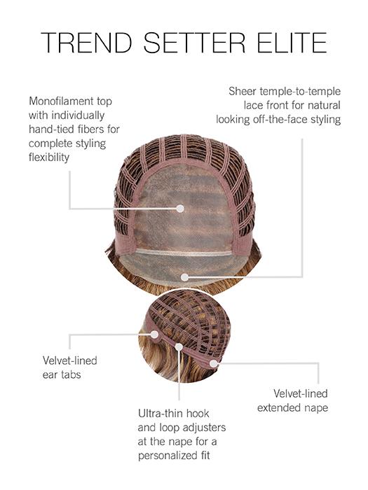 Trend Setter Elite by Raquel Welch is the lux-upgrade of the best-selling wig Trend Setter. This synthetic shag cut has a gorgeous lace front and monofilament top, allowing you to brush the hair off the face to reveal a seamless hairline. Part of Raquel Welch's Signature Collection, this medium density wig has an extended nape that makes the hair lay flush against the nape. Trend Setter is also available with a basic cap.